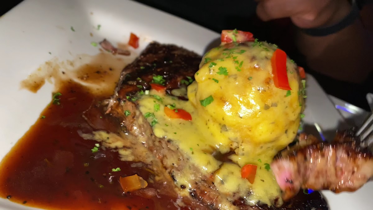 went on christmas eve and it was extremely busy, but we were still seated quickly. our server was nice. i had the ribs and there were so many on the plate and they were plated beautifully. they were delicious. the bbq sauce that comes on the side was a bit tangy, but not bad. i had the potato cakes as my side, and they were fairly good, though i felt they needed just slightly more salt. my sister had the ribeye and it was very good. i was pleasantly surprised to see that they will fill your to-go box for you.